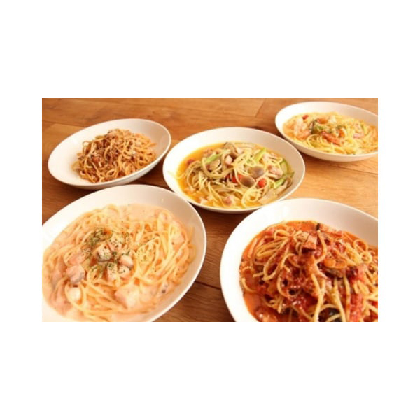海老のアメリケーヌソース・ゴルゴンゾーラのクリームソース・サーモンの明太子クリームソース・ボロネーゼソース・ベーコンとキノコのアラビアータソース×各1、生パスタ×5袋